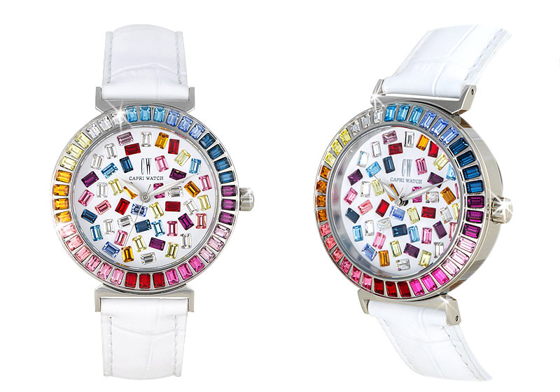 Ci sono le forme eleganti, ci sono le pietre che incorniciano le forme, ci sono i dettagli che fanno la differenza, c’è la qualità che da sempre caratterizza il mondo Capri Watch. Compresa la garanzia che mette al sicuro i nostri clienti da eventuali problemi. E poi ci sono i colori.