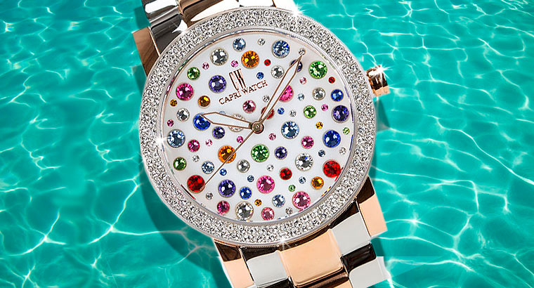 Un’isola effervescente, sempre pronta a far festa. In questi casi l’orologio da mettere al polso appartiene alla famiglia MultiJoy: una cascata di pietre colorate e Swarovski rende tutto più divertente, vivace, pirotecnico. Proprio come appare la Piazzetta durante le caldi sere estive.