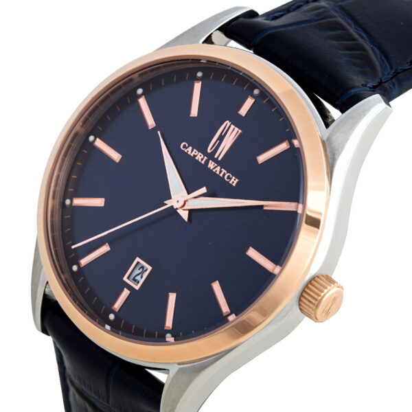 Scopri l’eleganza del nostro orologio Retrò da uomo, caratterizzato da un quadrante blu con datario, ideale per chi cerca un accessorio raffinato ma versatile. La ghiera placcata oro rosa dona al design un tocco sofisticato, mentre la cassa in acciaio assicura resistenza e durata nel tempo. Il cinturino blu in pelle completa il look, unendo comfort e stile senza pari.