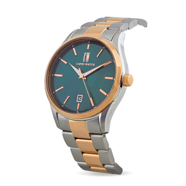 L’orologio Sunray Dark Green si distingue per il quadrante verde scuro con datario, che unisce stile classico e funzionalità. La ghiera placcata in oro rosa aggiunge un tocco di lusso e raffinatezza, mentre la cassa in acciaio garantisce robustezza e durata.