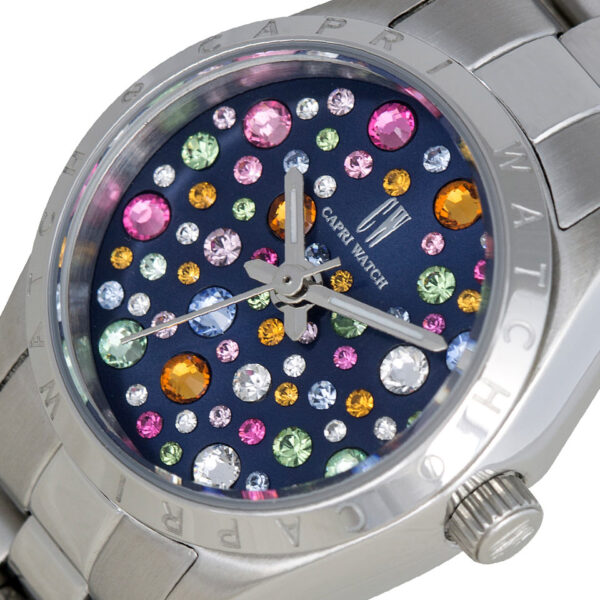 Un connubio perfetto tra luce e colore: l’orologio Sub MultiJoy Blu Stainless Steel con quadrante blu intenso è un’esplosione di brillantezza grazie alla presenza di cristalli Swarovski multicolore, che catturano lo sguardo ad ogni movimento.