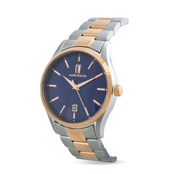 Indossa l’eleganza senza tempo con questo orologio Retrò dal design raffinato. Il suo quadrante blu con datario e la ghiera placcata oro rosa donano un look di lusso al tuo polso. La cassa in acciaio e il cinturino a maglie bimetal offrono una combinazione di comfort e classe, unendo il calore dell’oro rosa e la solidità dell’acciaio.