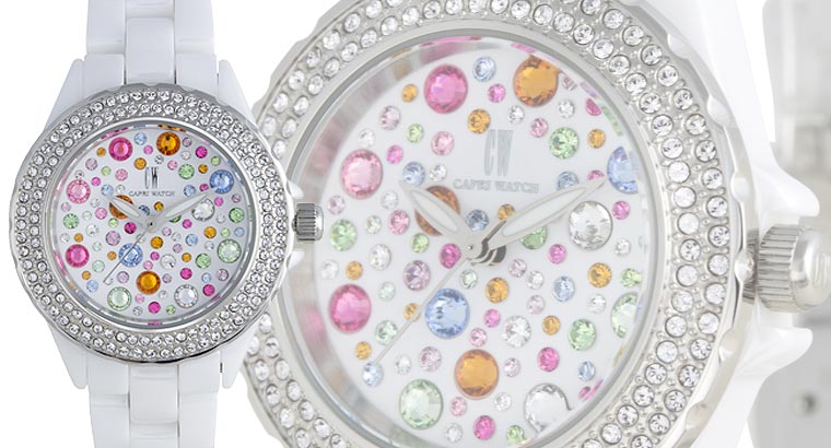 Il concetto di MultiJoy non si limita al classico orologio con pietre colorate su quadrante bianco. Chiaro, il modello base ha catturato l’attenzione del pubblico ed è diventato un simbolo di bellezza ed eleganza. Tutti amano il classico MultiJoy, ma con l’arrivo dei nuovi modelli che i JellyColors Collection sono stati aggiornati. E sono veramente belli, basta guardare le foto.