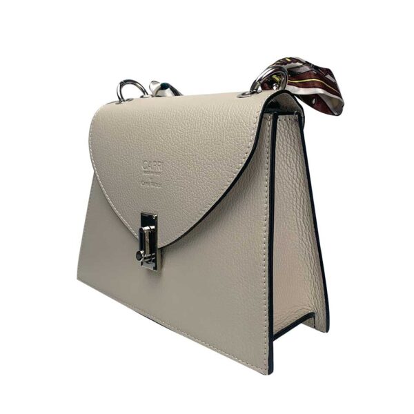 La tracolla, sempre realizzata in pelle, rende il modello comodo da indossare ogni giorno, senza rinunciare allo stile.