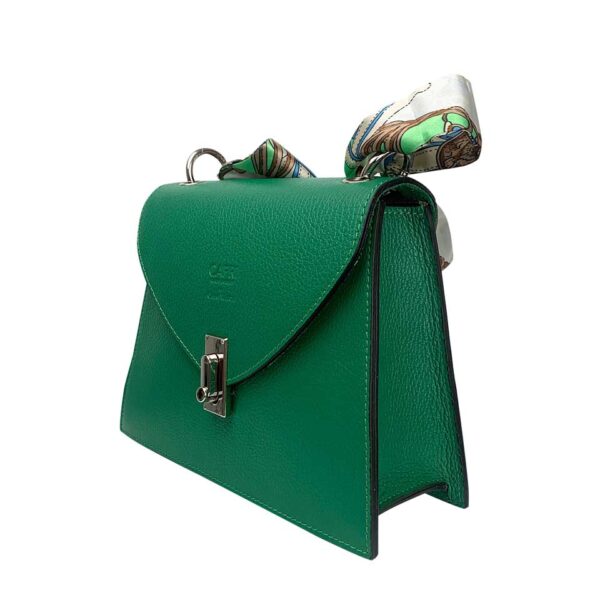 La variante verde della Borsa Foulard è pensata per chi cerca un accessorio elegante ma dallo stile naturale. Il manico in metallo intrecciato con un foulard verde acceso conferisce originalità e classe a questa borsa funzionale. La tracolla removibile consente un comodo utilizzo a spalla o a tracolla, mentre la chiusura con pattina e clip offre praticità e sicurezza. Le dimensioni compatte la rendono un complemento ideale per arricchire ogni outfit con un tocco di stile fresco e versatile.