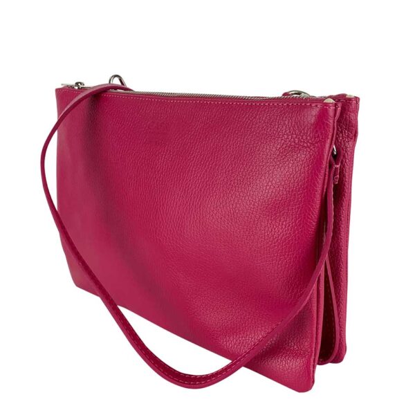 Questa Borsa a spalla Fucsia è realizzata in vera pelle, con una grana morbida che esalta il suo design.