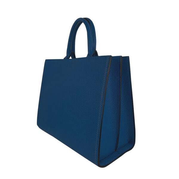 All’interno, la borsa è completamente rivestita in pelle e dispone di una suddivisione a tre sezioni, una delle quali chiusa da zip per un’organizzazione funzionale.