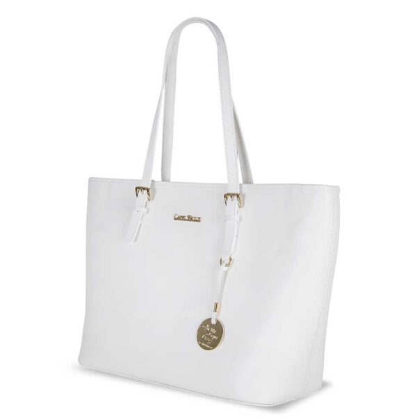 La Virginia White è la scelta ideale per uno stile pulito e luminoso. Il colore bianco esalta la cura dei dettagli e la qualità della pelle Saffiano, regalando un’eleganza sobria e moderna.
