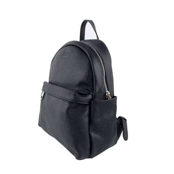 Zaino Nero funzionale ed elegante realizzato in pelle stampa “Alce” con una chiusura a pattina e cerniera sottostante. Internamente lo zaino è foderato in stoffa, ha una tasca interna chiusa a cerniera che si ripete anche sul retro dello zaino. Le bretelle sono in pelle, resistenti e regolabili.