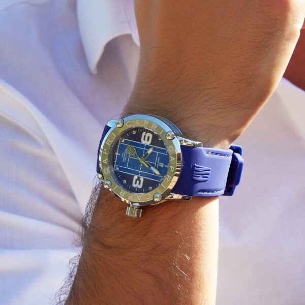 Scopri il fascino sportivo e raffinato dell’orologio Tennis Blu, un orologio che unisce il mondo del tennis all’eleganza contemporanea. Con il quadrante dal design originale ispirato al campo da tennis, questo orologio rappresenta una scelta perfetta per chi ama lo sport e per chi cerca un accessorio distintivo.