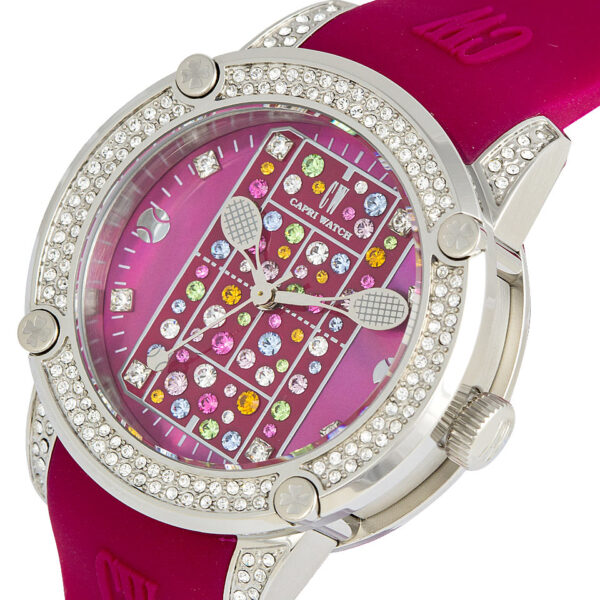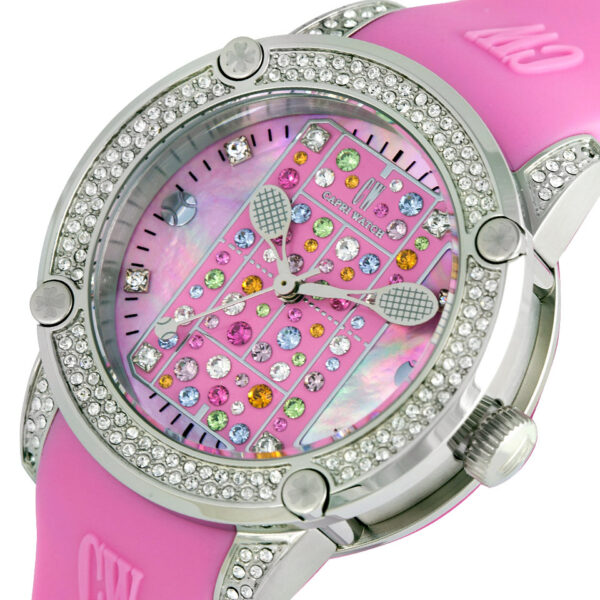 Un’idea innovativa per gli amanti dello sport e dello stile. L’Orologio Tennis Lady MultiJoy Pink vanta un quadrante rosa in madreperla impreziosito dal design unico che riproduce un campo da tennis con cristalli Swarovski colorati. Le lancette a forma di racchette e la ghiera con cristalli bianchi e 4 viti rendono questo orologio un pezzo unico nel suo genere.