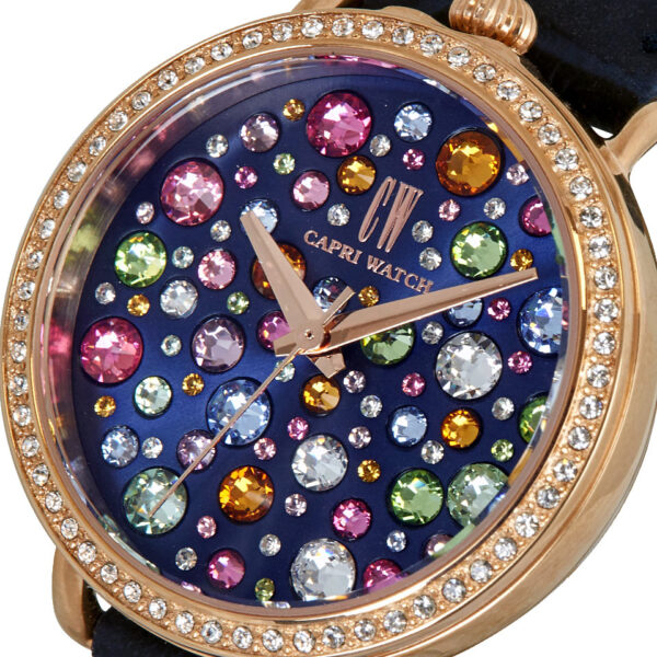 Indossa lo stile raffinato dell’Orologio Retrò Mini StormColor Blu Navy. Tutto in questo modello denota una grande attenzione alla cura dei particolari: il quadrante blu impreziosito da una miriade di cristalli colorati, la ghiera illuminata con cristalli Swarovski lungo il perimetro, la singolare corona a ore 12, la cassa in acciaio placcato oro rosa ed il cinturino in pelle Blu Navy.