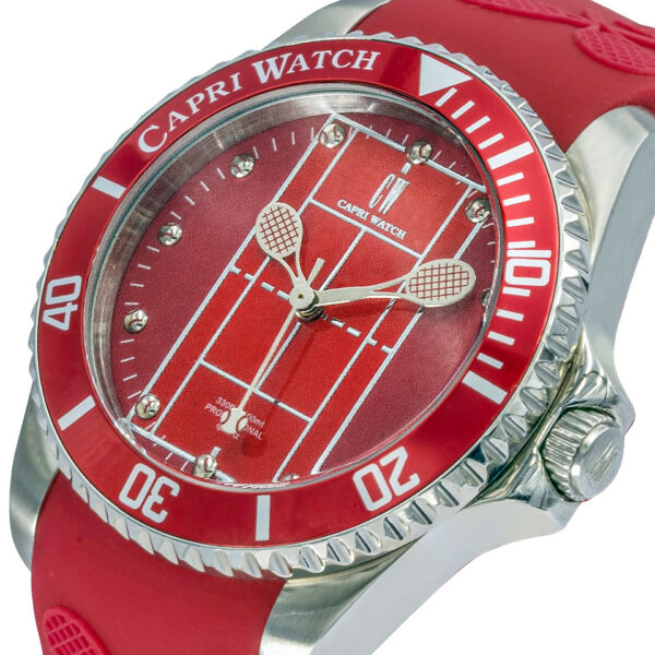Porta la passione per il tennis sempre al polso con questo originale Orologio Tennis variante rossa. Il quadrante unico riproduce il design del campo da tennis, con lancette creative a forma di racchette, per uno stile sportivo e distintivo.