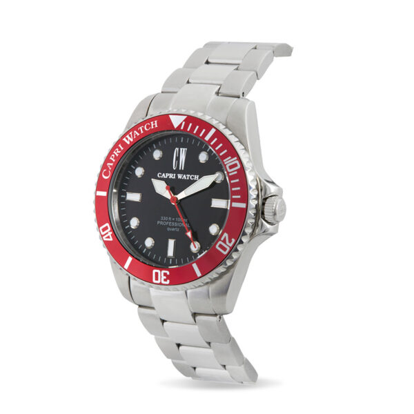 Il New Sub Black – Red è l’orologio ideale per l’uomo che cerca un accessorio sportivo e dinamico. La cassa in acciaio ospita un quadrante nero, mentre la ghiera rossa in acciaio aggiunge un contrasto audace e accattivante. Il cinturino in acciaio assicura una vestibilità perfetta per l’uso quotidiano, facendo di questo orologio un accessorio versatile e di stile.