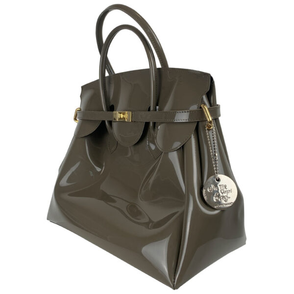 Il design compatto e strutturato la rende perfetta per accompagnarti in ogni momento della giornata, mentre la chiusura metallica argentata e il charm portafortuna aggiungono un tocco di classe e personalità. Ogni dettaglio è curato con precisione artigianale, espressione del miglior Made in Italy.