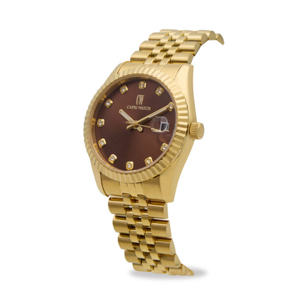 Il quadrante unico, ispirato all’orologio del campanile della celebre Piazzetta di Capri, evoca l’atmosfera autentica e suggestiva dell’isola.