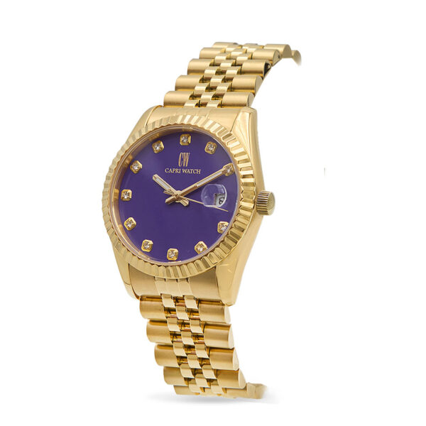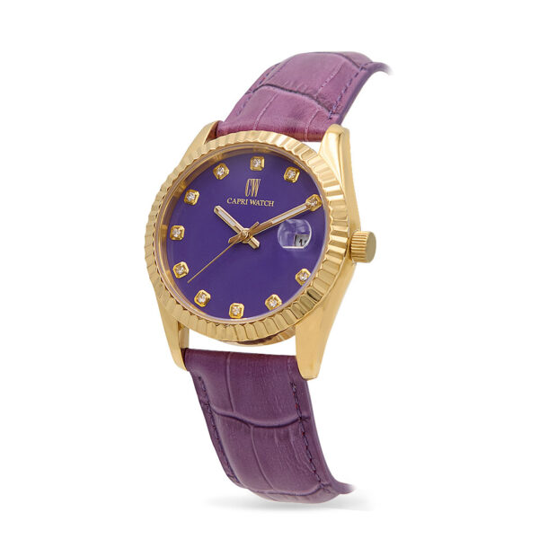 220,00 €Scopri il Capri Watch Eternity Gold Purple da donna, un orologio elegante e raffinato perfetto per chi ama distinguersi. La cassa in acciaio dorato unisce resistenza e stile, mentre il quadrante viola con Indici in cristalli cattura la luce e gli sguardi. Lancette dorate, datario a ore 3 e cinturino in pelle viola completano il design unico. Ideale come orologio da donna elegante da giorno e da sera, per ogni occasione speciale.