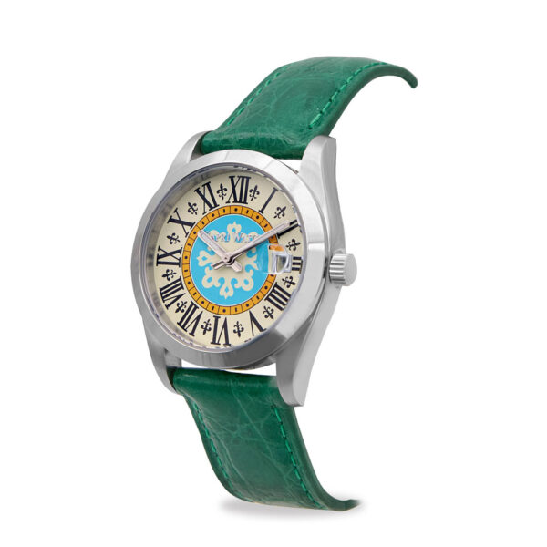 250,00 €L’Orologio Glamour First Green Stainless unisce eleganza e freschezza mediterranea. Il quadrante, ispirato al campanile della storica Piazzetta di Capri, rende ogni istante unico e riconoscibile. Il cinturino in coccodrillo verde avvolge il polso con comfort e stile, mentre la cassa in acciaio e il datario a ore 3 garantiscono funzionalità quotidiana.