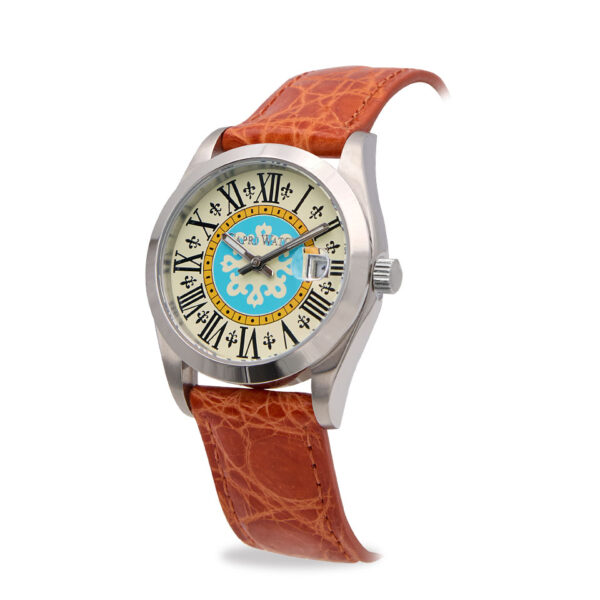La cassa in acciaio e il datario a ore 3 garantiscono funzionalità quotidiana senza rinunciare al design. Perfetto come orologio unisex elegante, da indossare in ogni occasione, dal lavoro al tempo libero, incarnando l’autentico spirito mediterraneo.