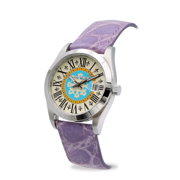 250,00 €Un accessorio che esprime personalità e fascino mediterraneo. Questo orologio Capri Watch si caratterizza per il suo cinturino viola in coccodrillo naturale, un dettaglio raffinato e contemporaneo che dona energia e stile a chi lo indossa, e per il quadrante esclusivo riprende i motivi decorativi dell’orologio della storica Piazzetta di Capri, trasformando un simbolo dell’isola in un segnatempo da portare al polso.