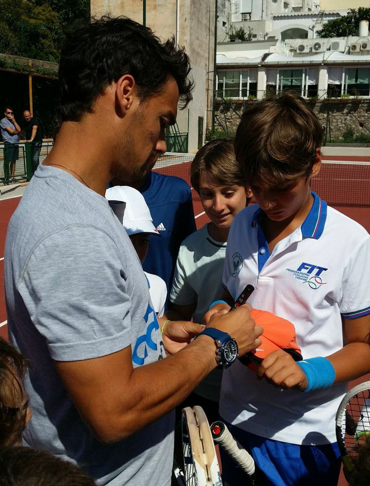 Fabio Fognini sull’isola azzurra, testimonial di Capri Watch, in visita agli allievi del Tennis Club
